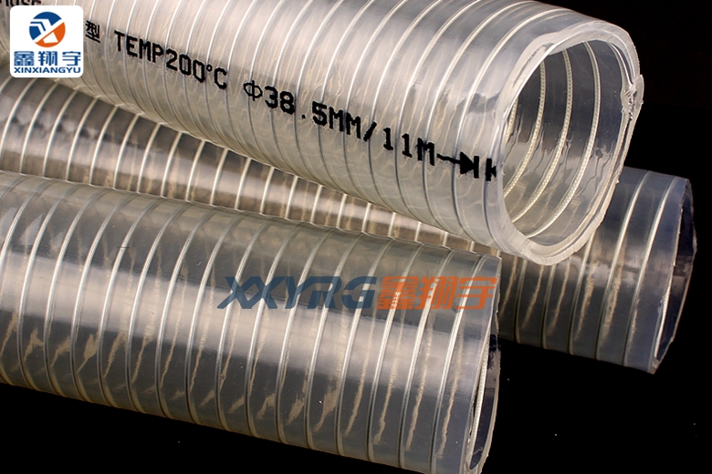 性質:透明、耐酸堿、耐油、耐高溫、高壓、使用壽命長;抗高壓、真空、抗壓縮、非常流暢、良好的抗化學性,高強度鍍鋅鋼絲螺旋內嵌于柔韌性很強的管子內壁中, 透明管體,可見性的流體輸送和易空流量;