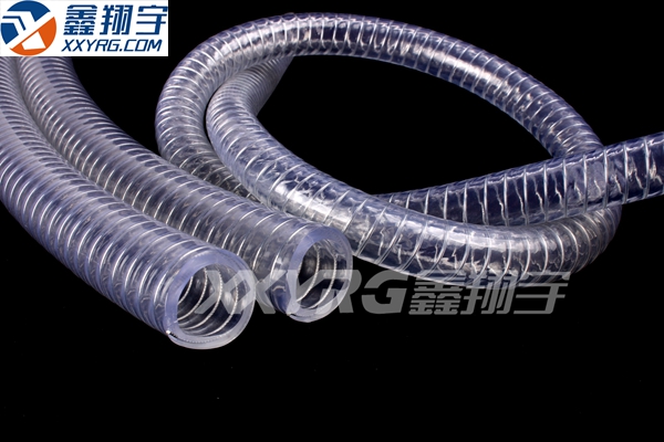 PVC鋼絲增強軟管或PVC透明鋼絲增強軟管,以優質PVC塑料原料做主體,PVC鋼絲增強軟管也即是運用鋼絲增強的PVC鋼絲增強軟管。內嵌螺旋鋼絲作為增強層,故而該商品剛柔兼備,彎曲自如。PVC軟膠料生產的增強管為內嵌鋼絲骨架的PVC軟管。表里管壁通明、潤滑、無氣泡,流體運送清晰可見。